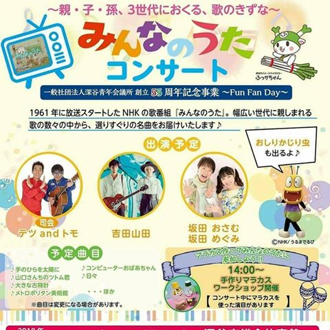 埼玉県深谷市にあのNHKのみんな歌コンサートが来ます!