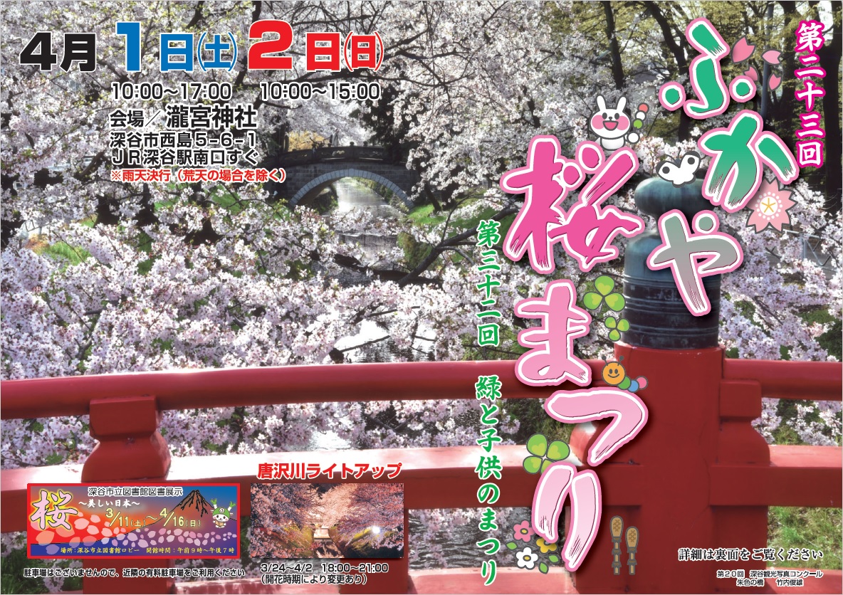 深谷一番の桜名所として知られる「唐沢川の桜堤」をメイン会場として行われている『深谷桜まつり』です。。
