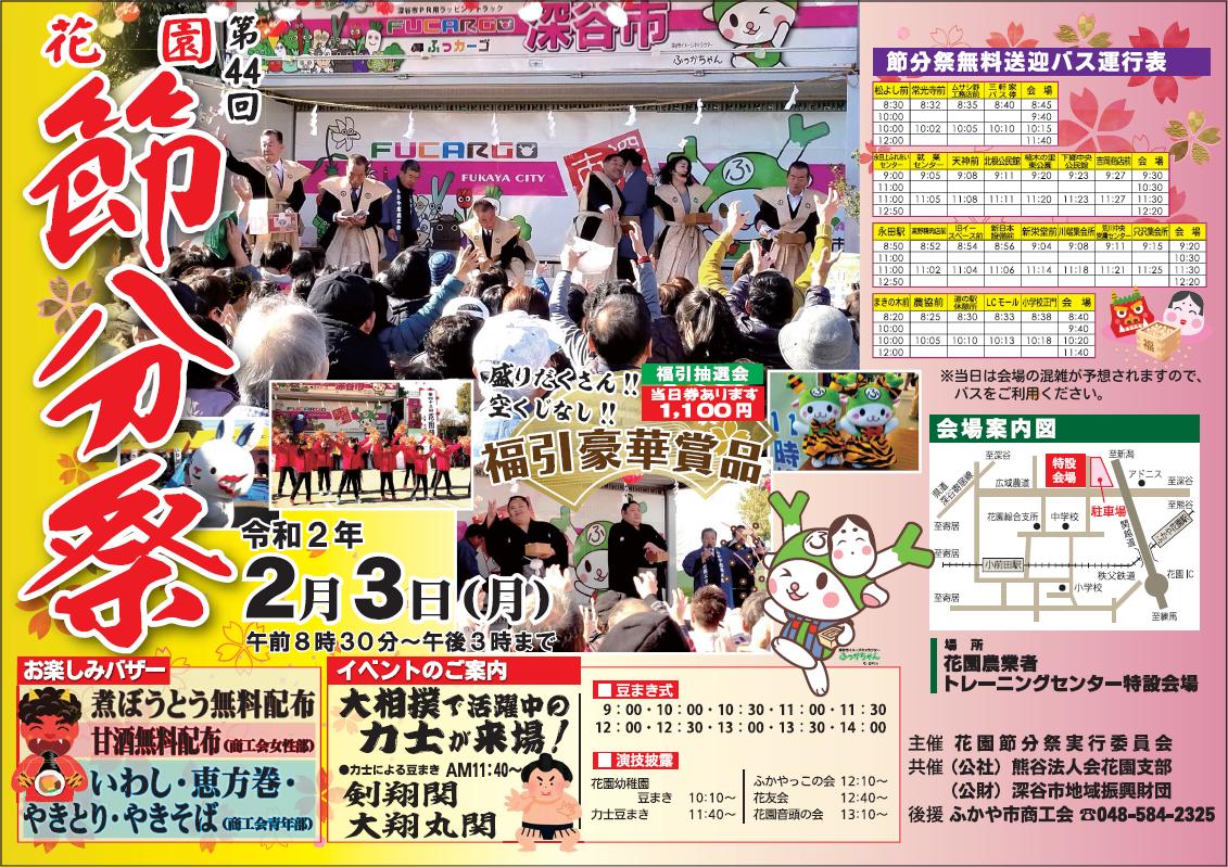 第44回 花園節分祭 2020.2.3(月) 2020年1月30日 manaraku 0 イベント詳細 日付: 2020年2月3日 8:30 AM – 3:00 PM カテゴリ: まつり 8時30分~15時頃まで 花園農業者 トレーニングセンター特設会場 共有:クリックして Twitter で共有 (新しいウィンドウで開きます)Facebook で共有するにはクリックしてください (新しいウィンドウで開きます)クリックして印刷 (新しいウィンドウで開きます) 関連