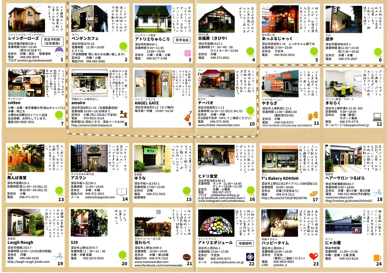 深谷で楽しむ おみせめぐりマップ 2017年 2016年12月19日 manaraku ふかなび情報 0 2016年12月に発行された「深谷こだわりのおみせマップ」の 第2弾「深谷で楽しむ おみせめぐりマップ」が発行されました。 掲載あるお店で配布されておりますので、どうぞお手にとって ご覧くださいませ! 共有:クリックして Twitter で共有 (新しいウィンドウで開きます)Facebook で共有するにはクリックしてください (新しいウィンドウで開きます)クリックして印刷 (新しいウィンドウで開きます) 関連 おみせめぐりマップ深谷
