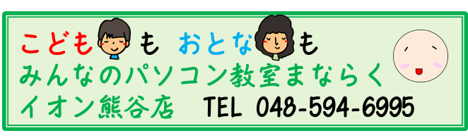 パソコン教室まならくイオン熊谷店|プログラミング ロボット 速読 脳トレ 2017年12月1日 manaraku 学習 0 深谷市上柴にある「パソコン教室まならく」さんの2号店が イオン熊谷内にオープン致しました。 〒360-0815 埼玉県熊谷市本石2-135 イオン熊谷店店内3F 営業時間(予約制) 平日・土曜 9:50~18:50 日曜・祝日 9:50~15:20 電話番号 048-594-6995 定休日 月曜日 ※臨時休業は別途ホームページでお知らせ致します 共有:クリックして Twitter で共有 (新しいウィンドウで開きます)Facebook で共有するにはクリックしてください (新しいウィンドウで開きます)クリックして印刷 (新しいウィンドウで開きます) 関連 パソコン教室プログラミングロボットプログラミング脳トレ認知症速読